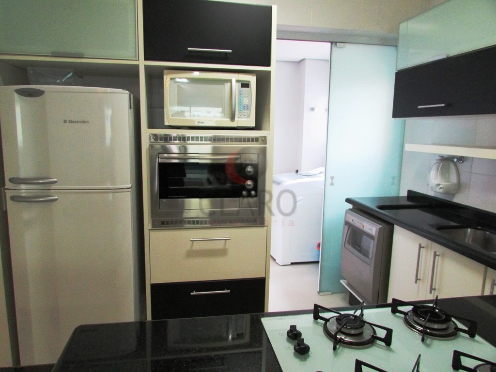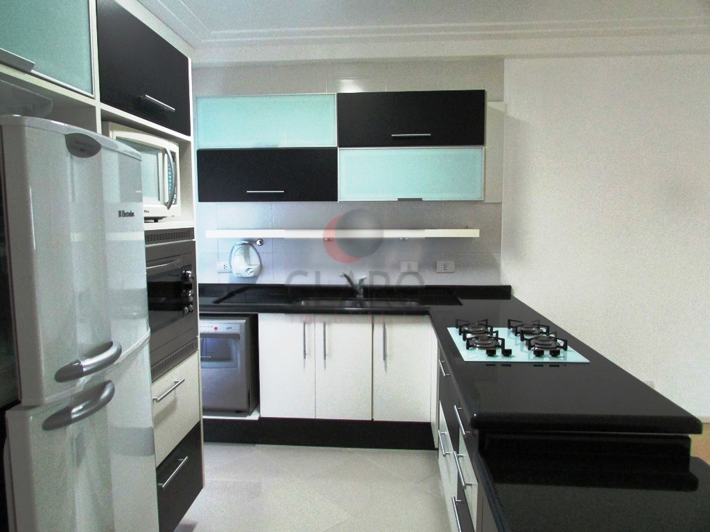 - Cozinha gourmet com tampo em granito, cooktop Fischer, geladeira, micro-ondas, forno Fischer, lava louça Brastemp