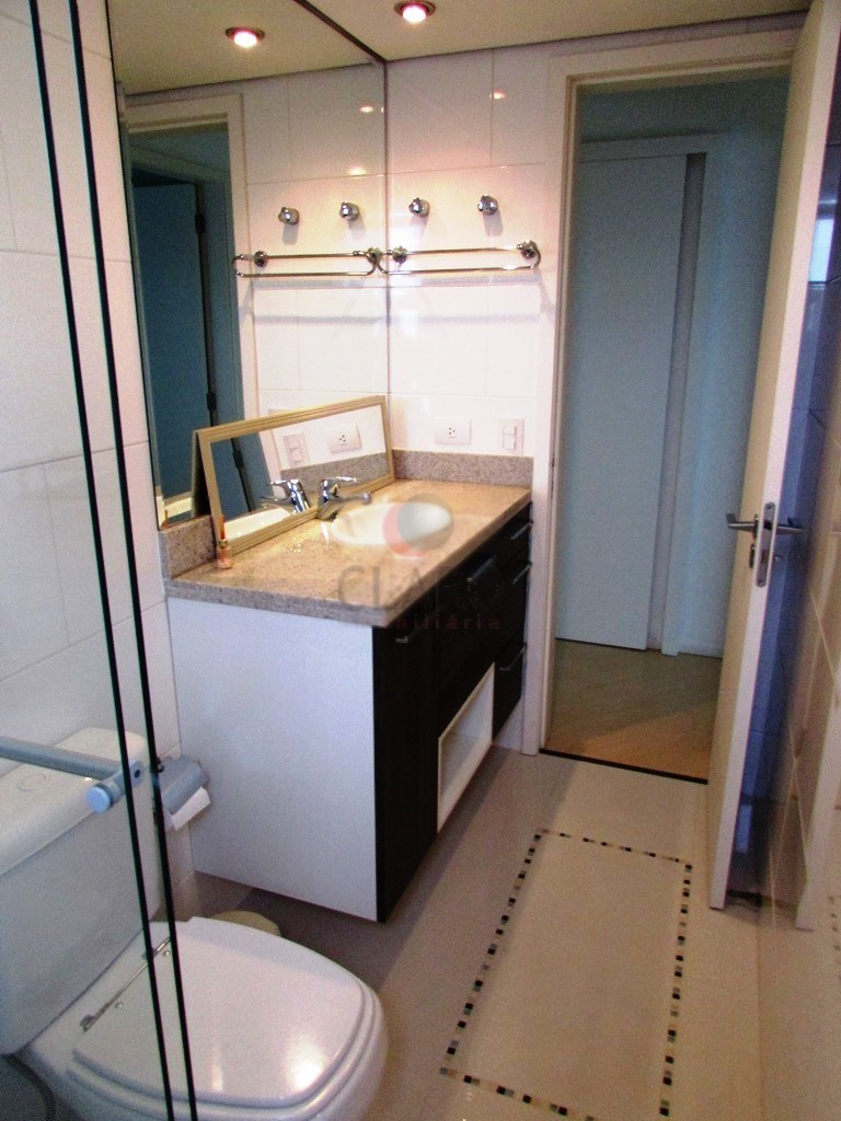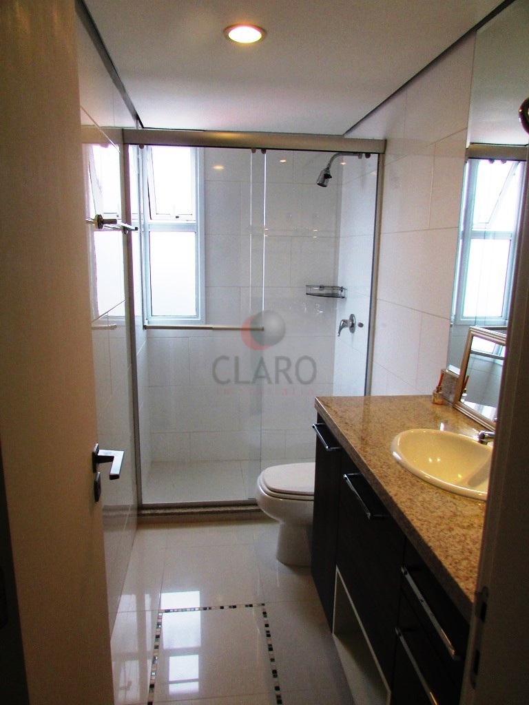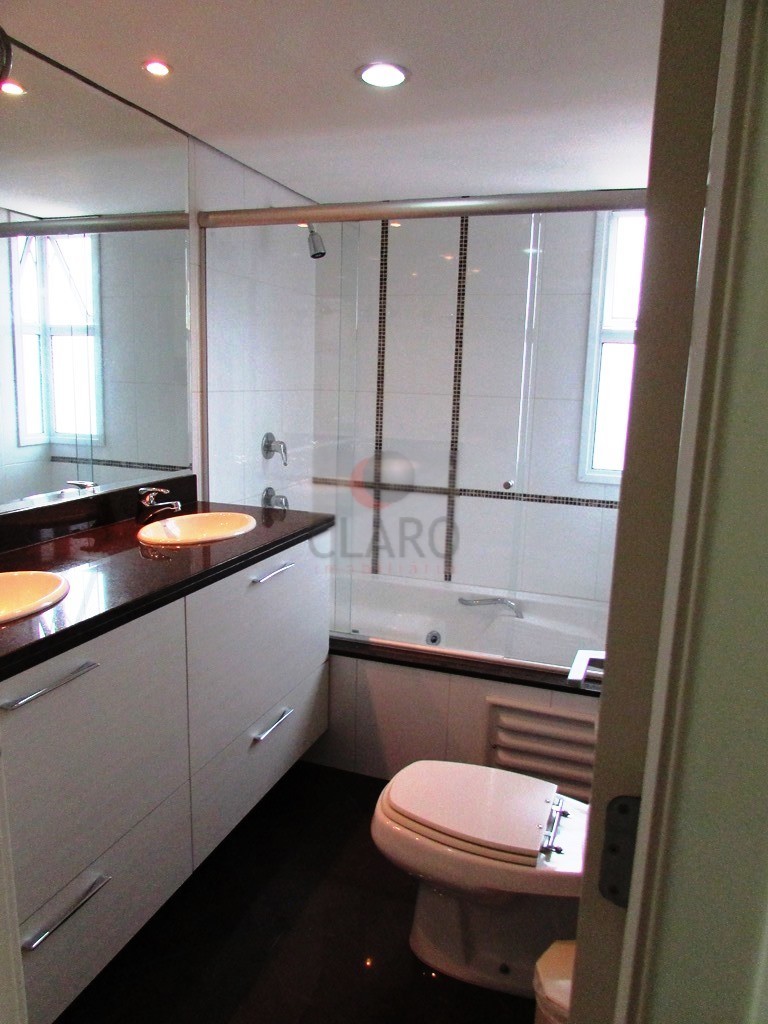 - BWC suíte com piso em porcelanato, banheira de hidromassagem, box em blindex, armários planejados, iluminação embutida, cuba dupla com torneiras monocomando e espelho