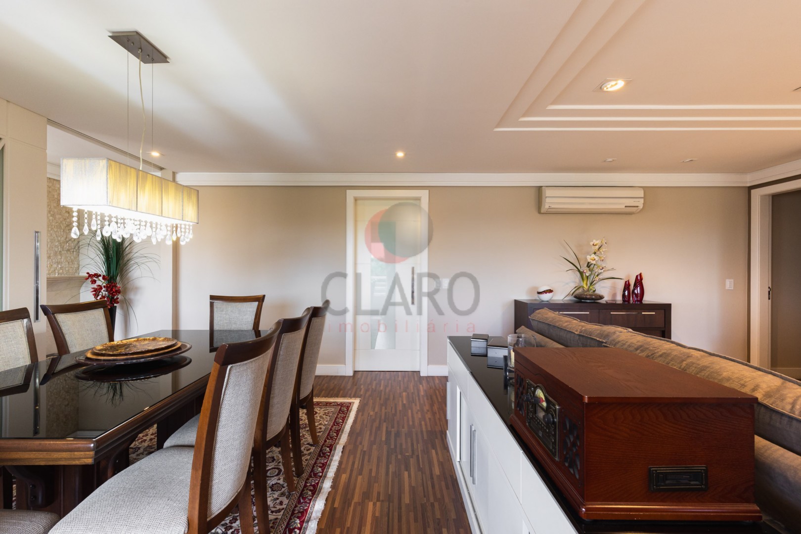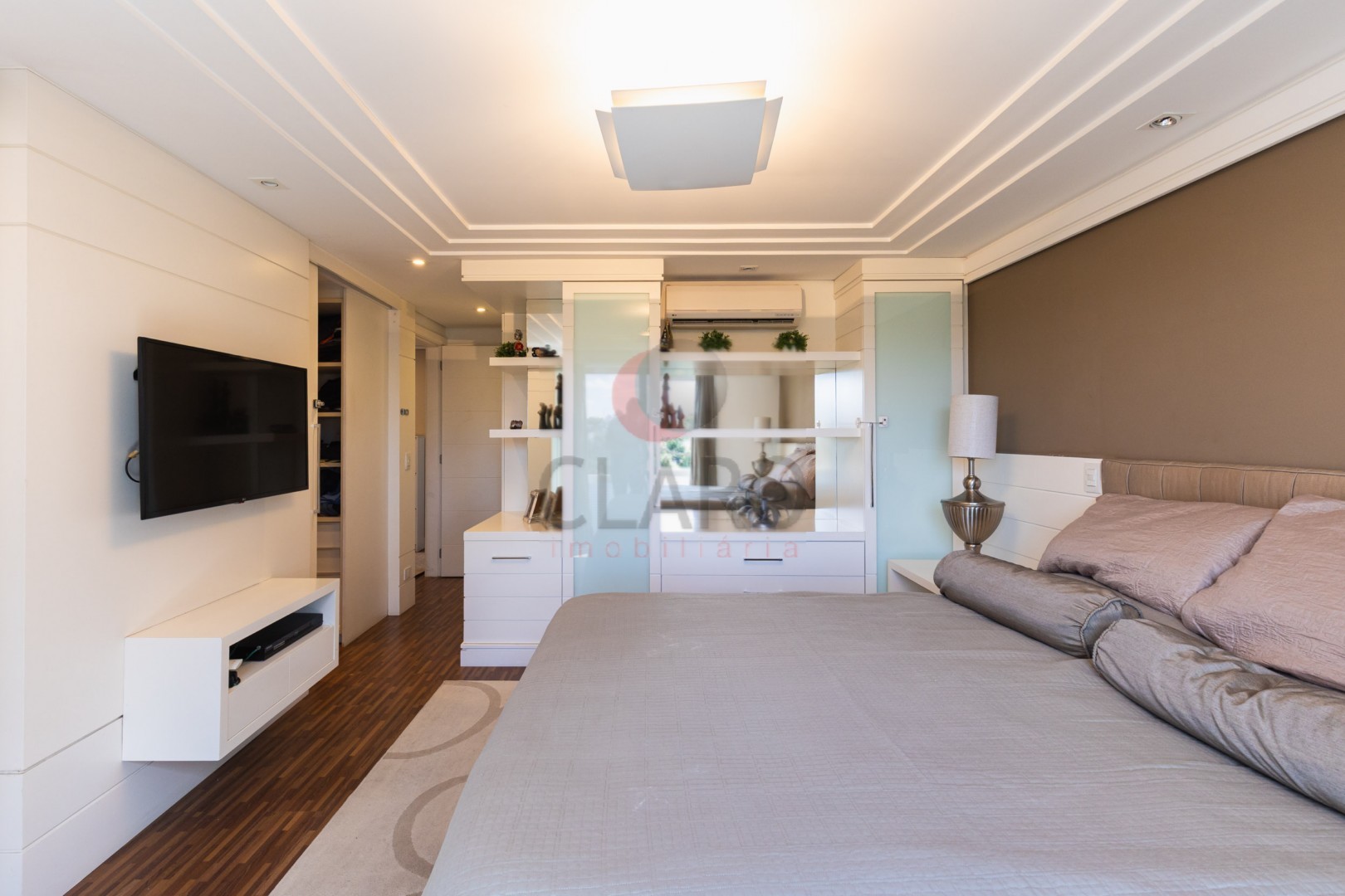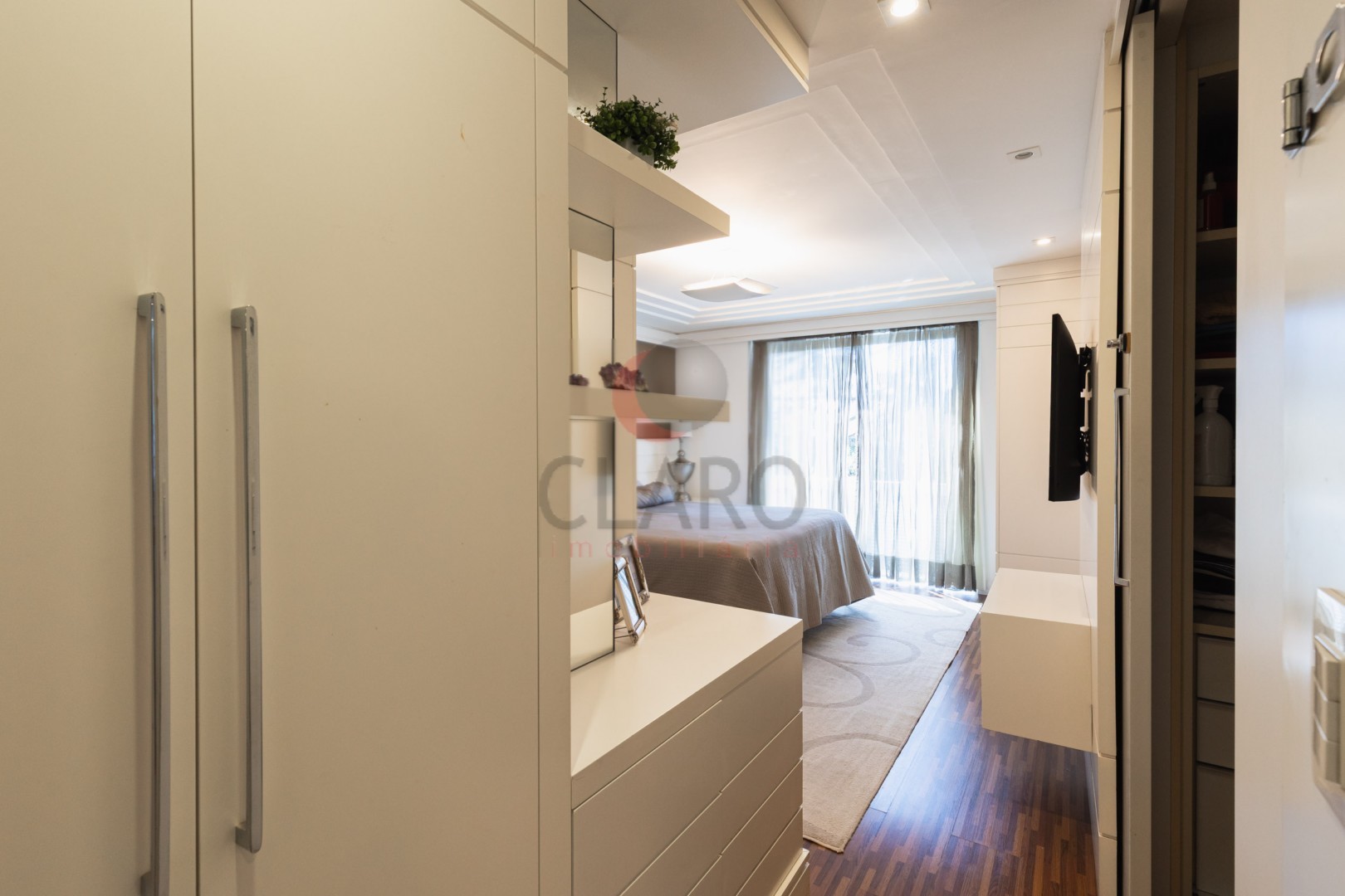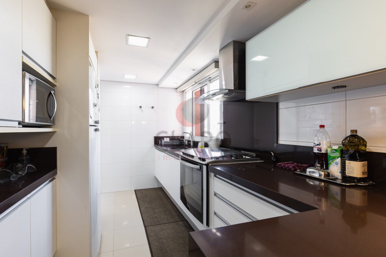 Permanecem no imóvel todos os armários fixos, painéis em madeira fixos, fogão embutido, coifa embutida, espelhos, ar condicionado, iluminação e lustres.