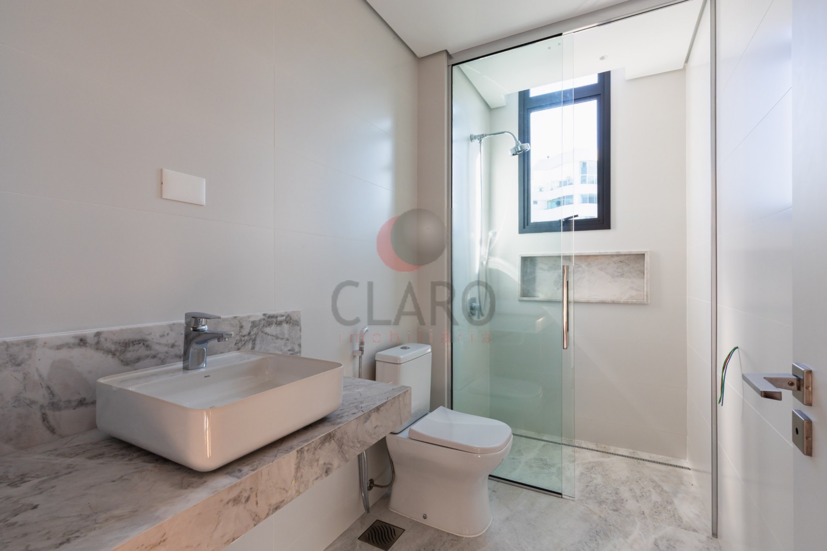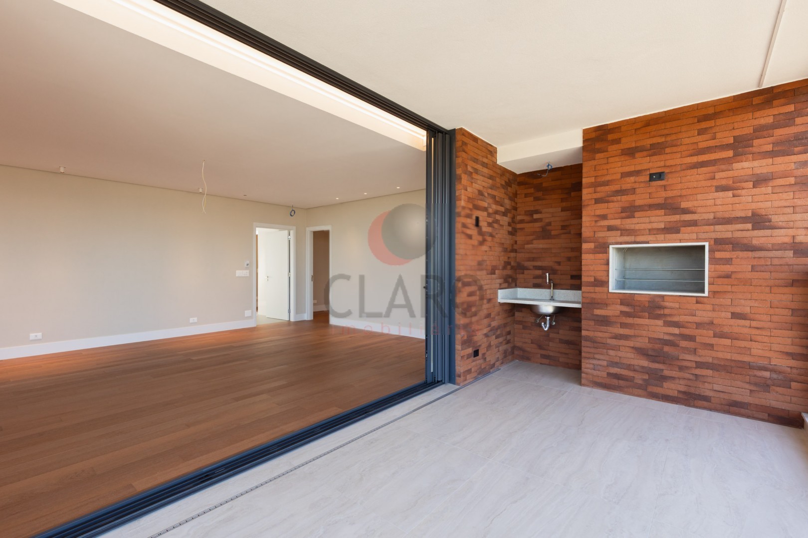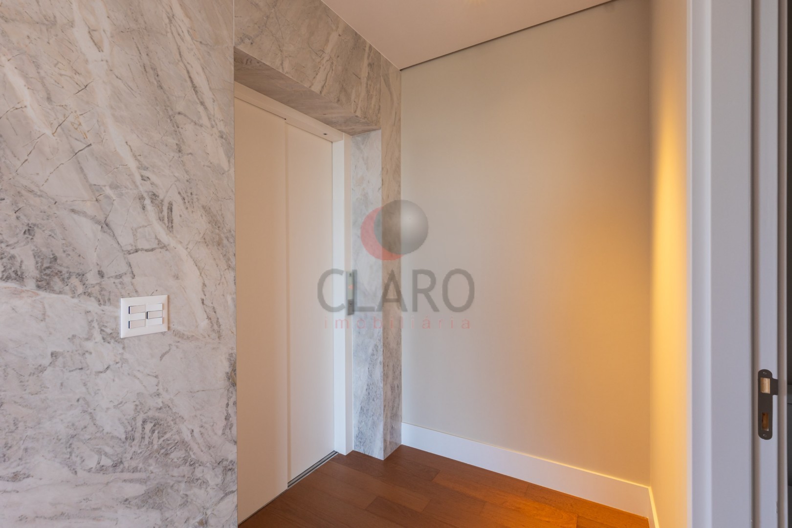 Contendo sala para 3 ambientes, lareira, lavabo, sacada com churrasqueira a carvão fechada em vidro (com sistema Reiki), Três Suítes (sendo a master com closet), Escritório, piso aquecido em todos os ambientes, teto rebaixado em gesso, projeto de iluminação (desenvolvido pela Loja Alma Light), piso em madeira no apto todo, venezianas automatizadas, BWC da suíte master revestida em mármore branco Paraná, box, bancadas em mármore com pias de sobrepor e metais monocomando.