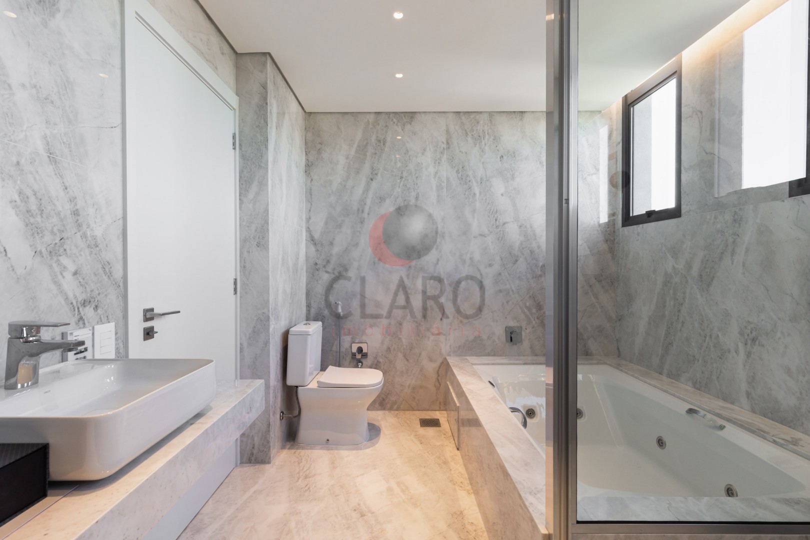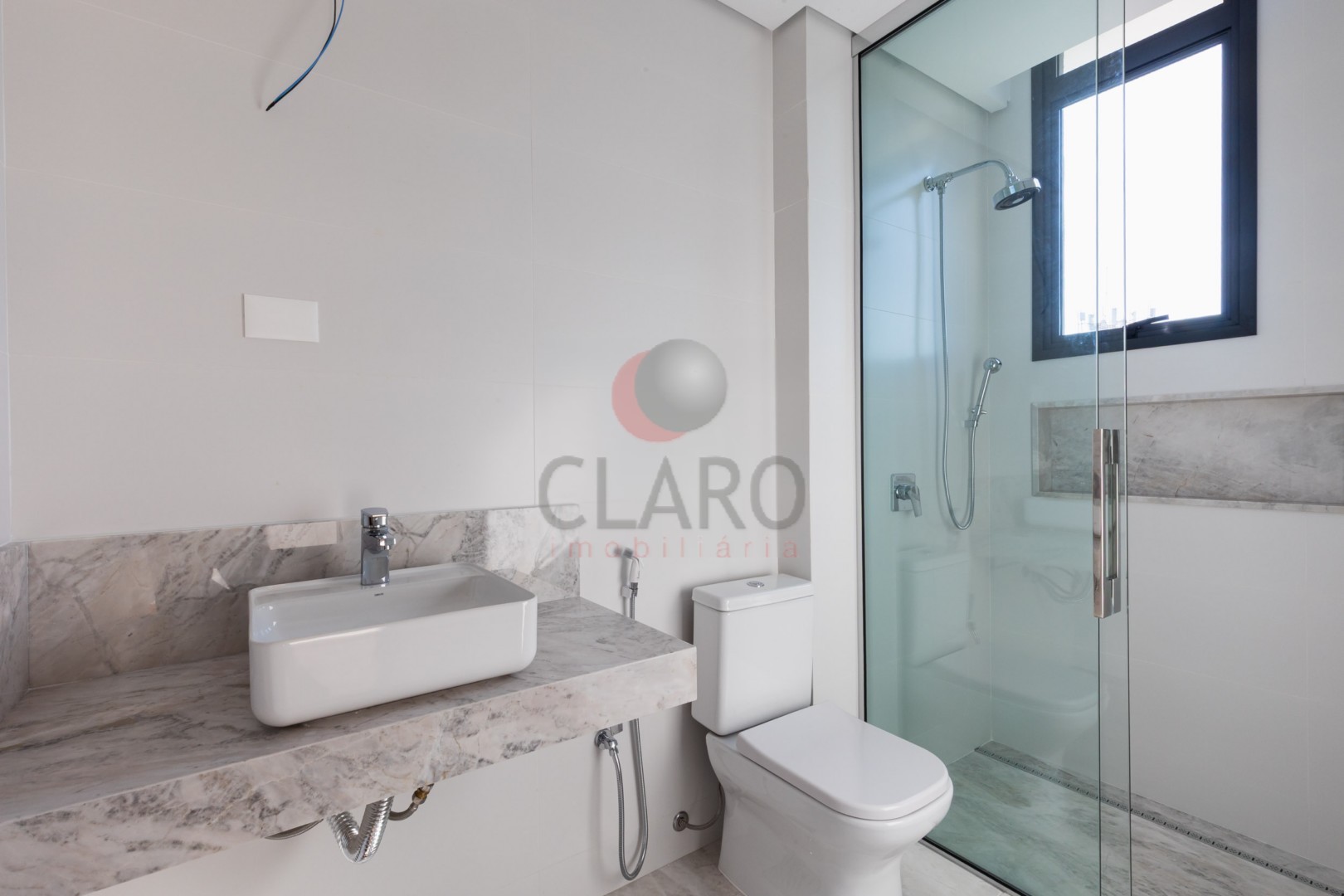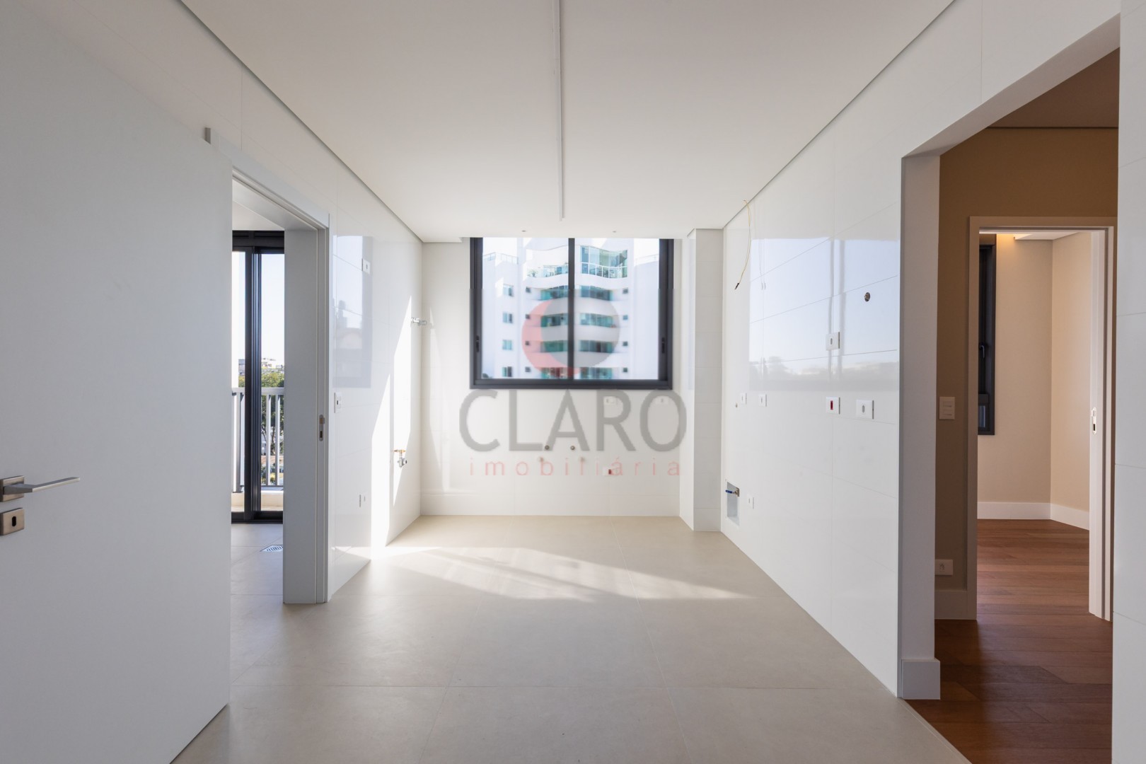 Contendo sala para 3 ambientes, lareira, lavabo, sacada com churrasqueira a carvão fechada em vidro (com sistema Reiki), Três Suítes (sendo a master com closet), Escritório, piso aquecido em todos os ambientes, teto rebaixado em gesso, projeto de iluminação (desenvolvido pela Loja Alma Light), piso em madeira no apto todo, venezianas automatizadas, BWC da suíte master revestida em mármore branco Paraná, box, bancadas em mármore com pias de sobrepor e metais monocomando.