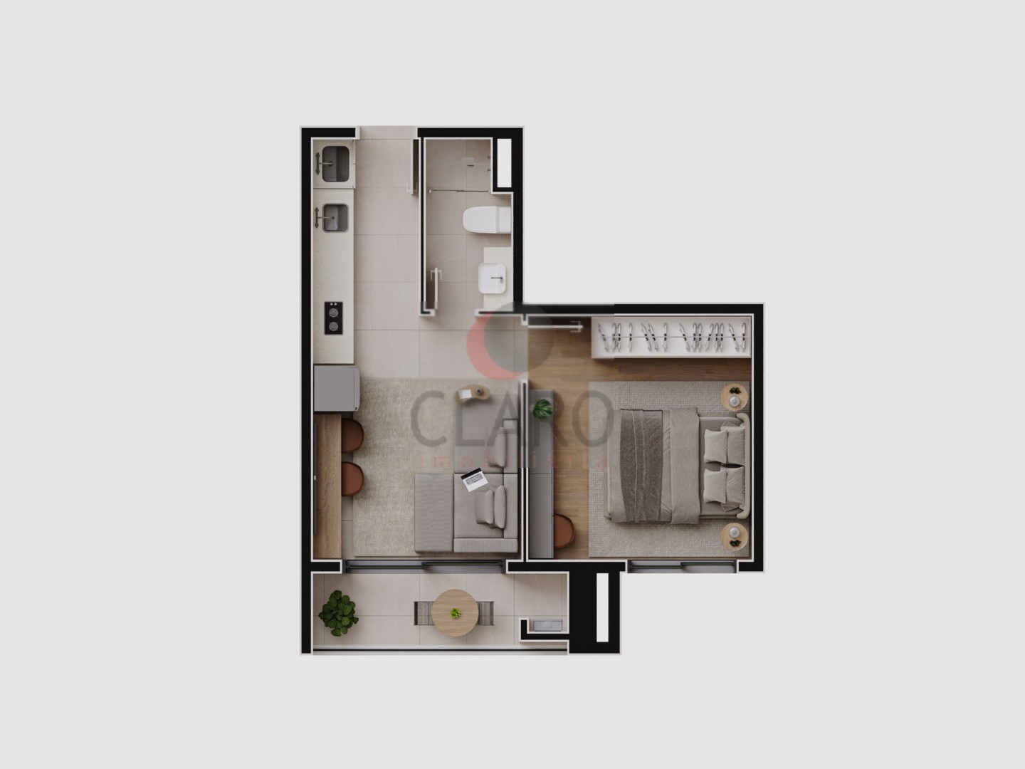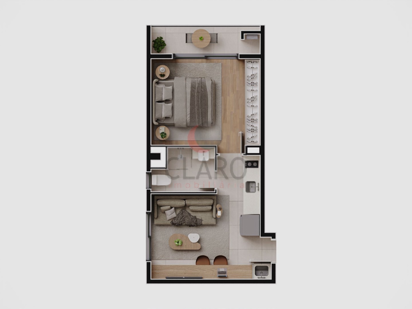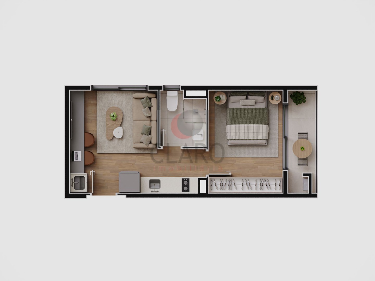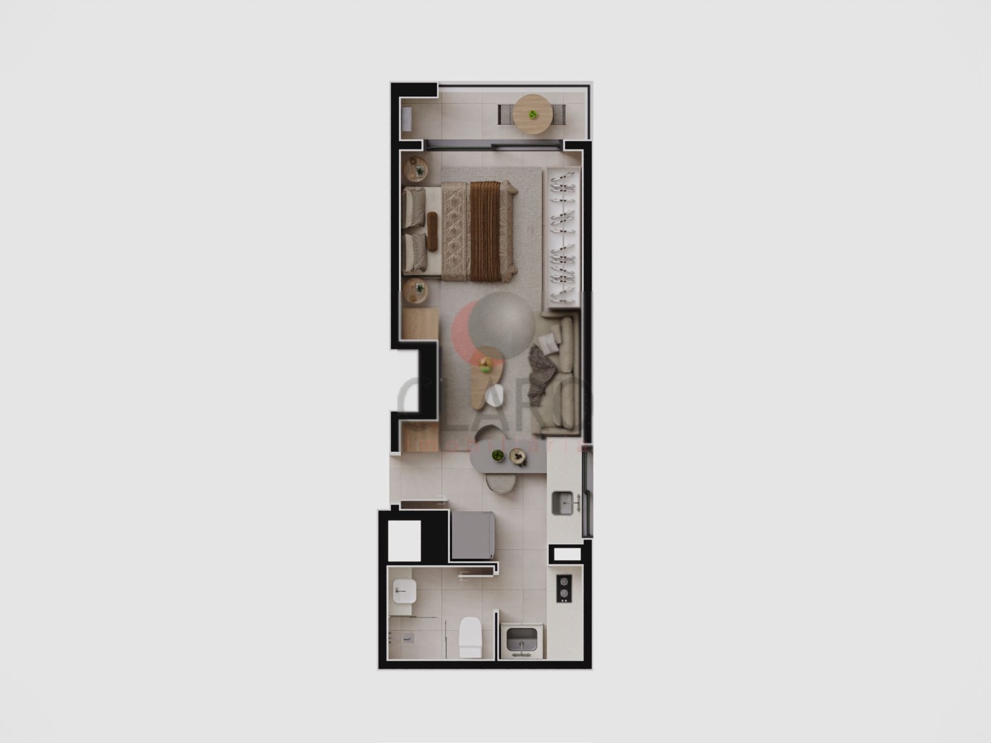 Opções de studio, 1 dormitório e 2 dormitórios.