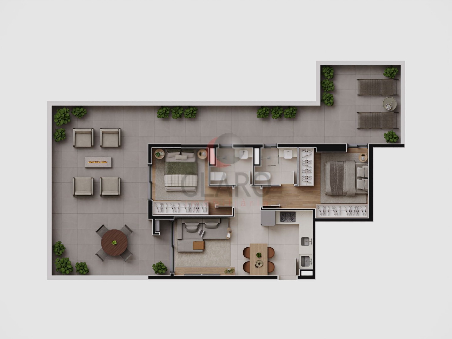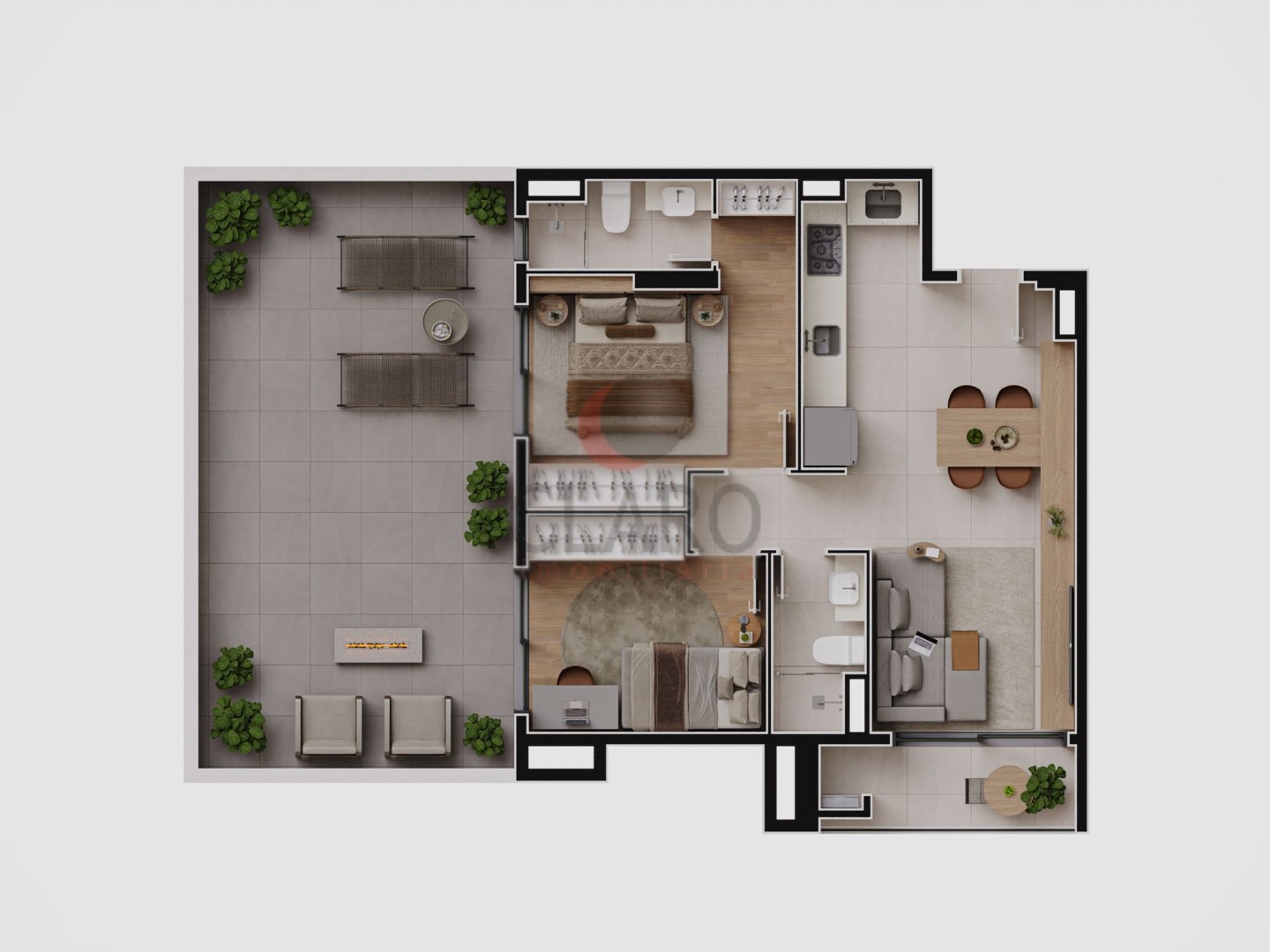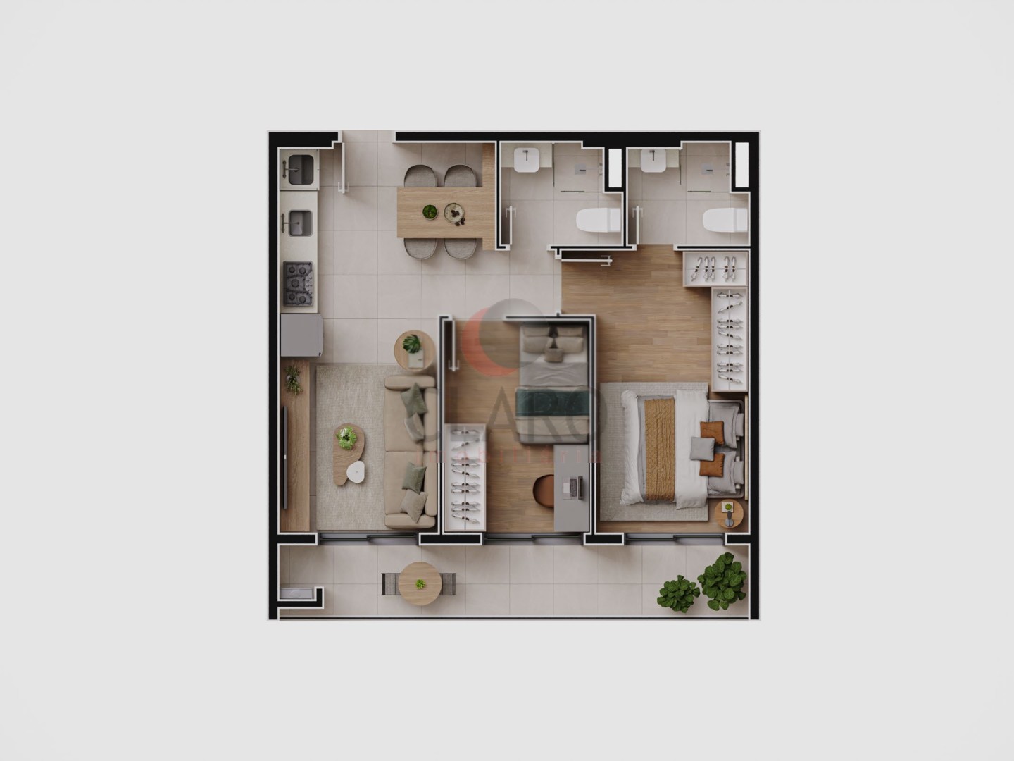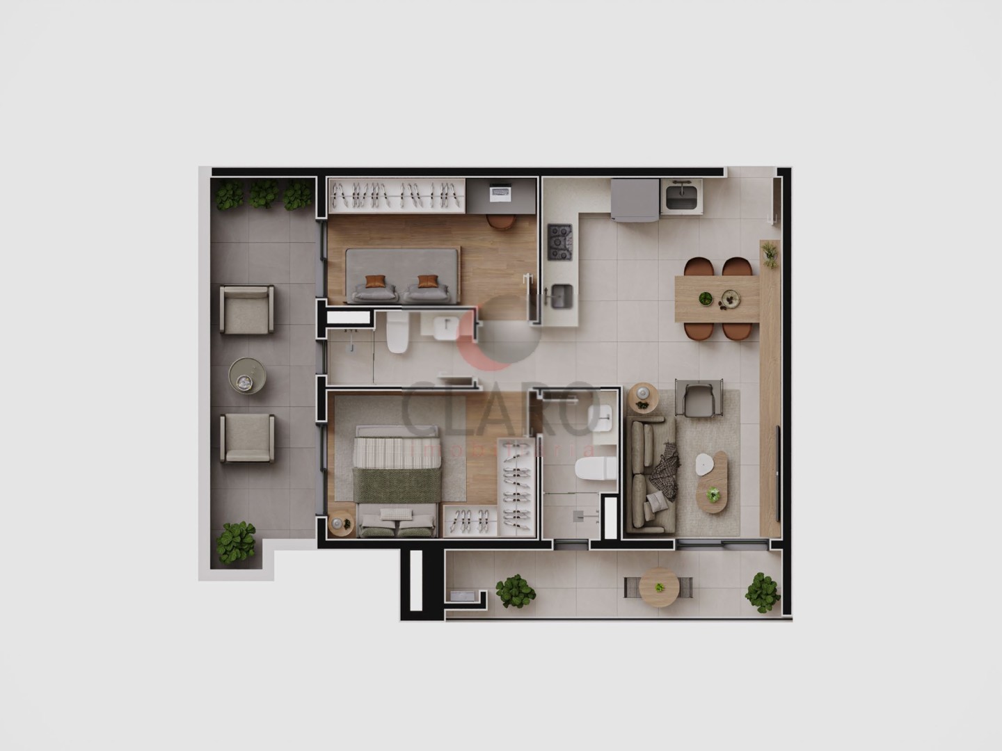 Opções de studio, 1 dormitório e 2 dormitórios.